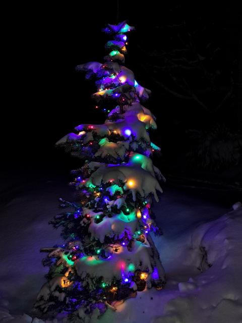 OÚOsvětlení v pouličních lampVánoční stromeček před budovou OÚ