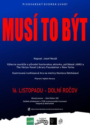 Pivovarský Dvorek zve na představení "MUSI TO BÝT", které se uskuteční dne 16. 11. 2025 v 17:00 hodin v bývalém pivovaru - Dolní Ročov.