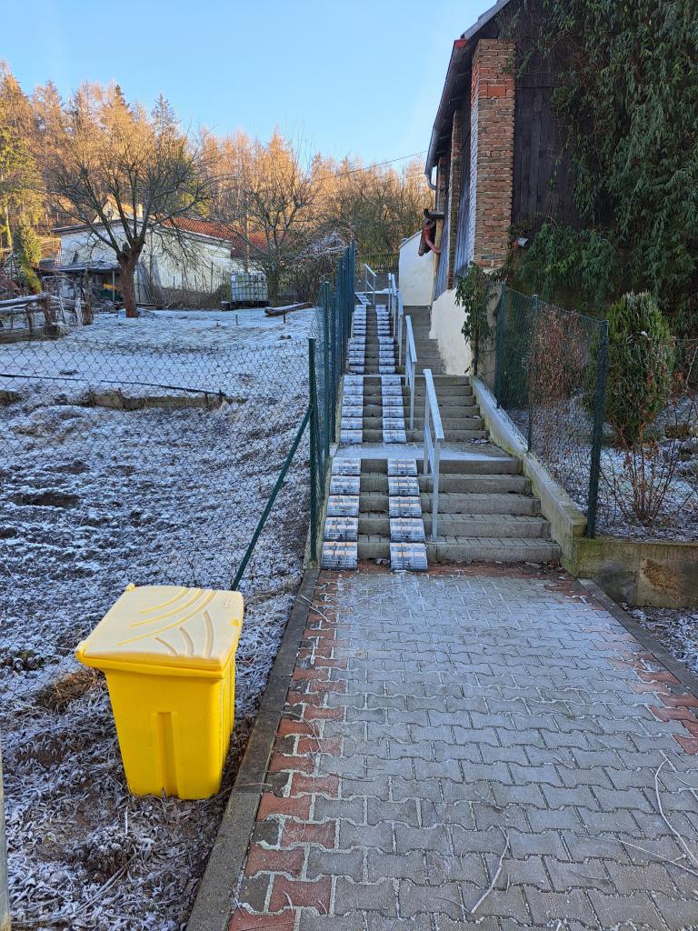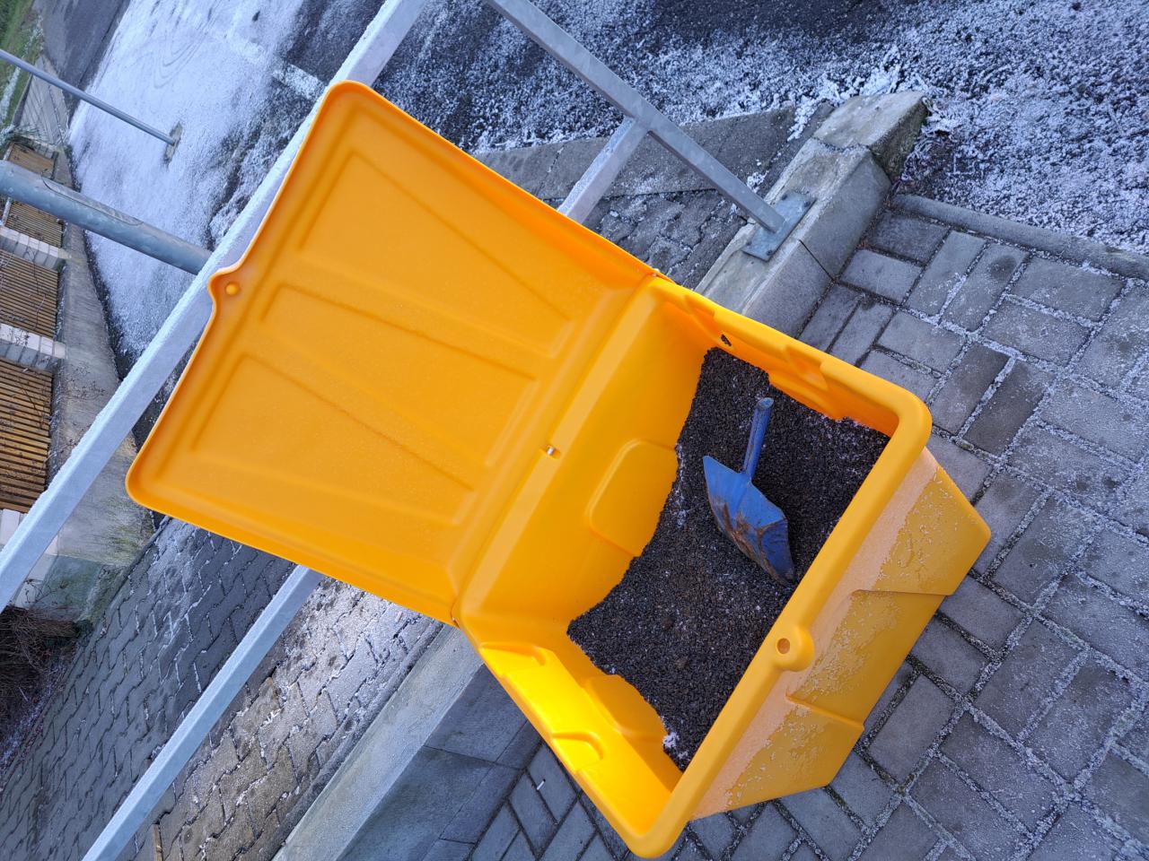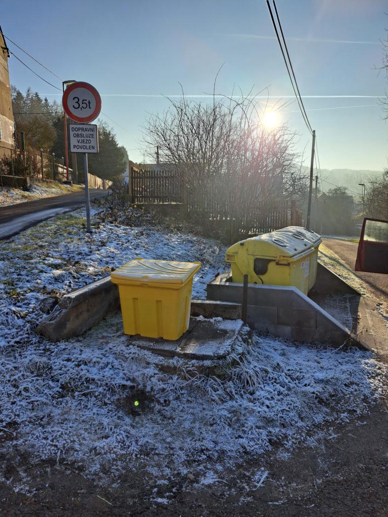 V rámci zimní údržby chodníku a silnic bylo pro větší bezpečnost chodců a vozidel pořízeno 8ks nových zásobníků na posypový materiál.