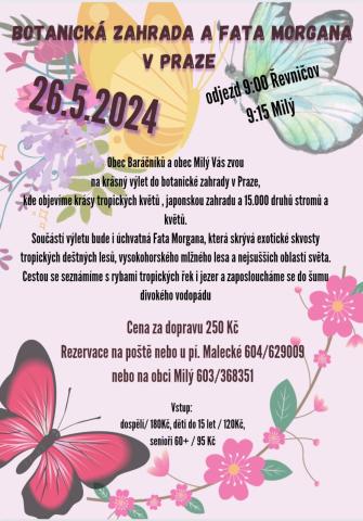Obec Baráčníků a obec Milý Vás zvou na výlet do Botanické zahrady v Praze dne 26.5.2024