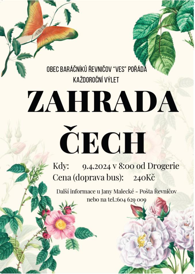 Obec Baráčníků Řevničov "Ves" pořádá každoroční výlet Zahrada Čech dne 9.4.2025