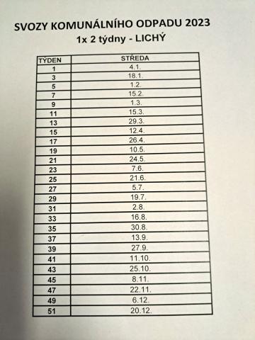 Přehled svozu komunálního odpadu 2023