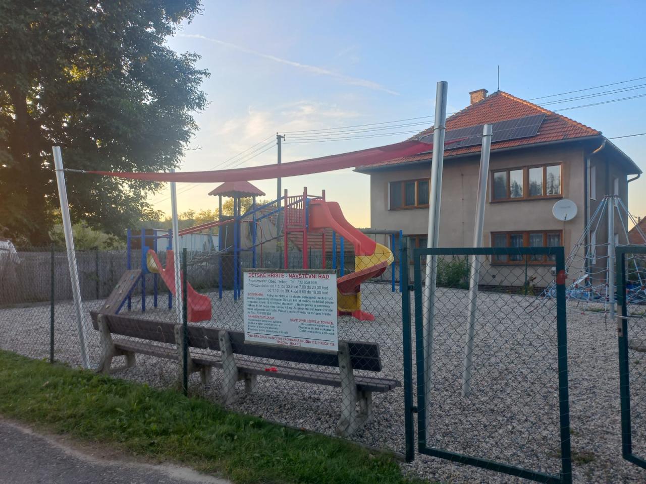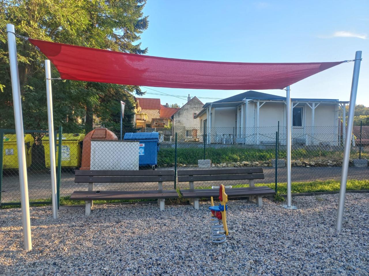 V měsíci září proběhlo dokončení realizace zastínění dětské hřiště, současně proběhla revize herních prvků.