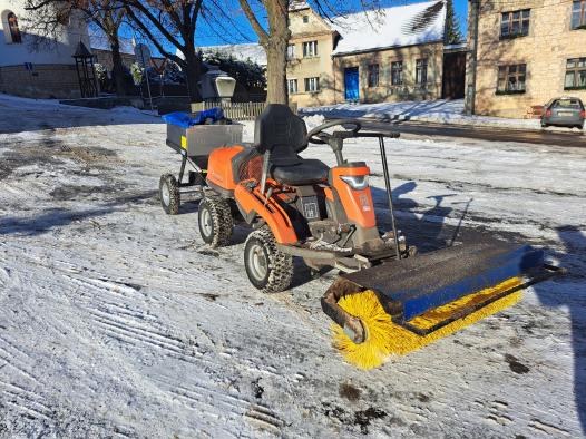 Dne 10.8.2023 byl ze strany obecního úřadu převzat nový stroj k úklidu místní komunikace typ. Husqvarna Rider R316tsX.