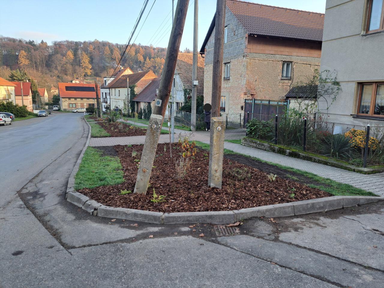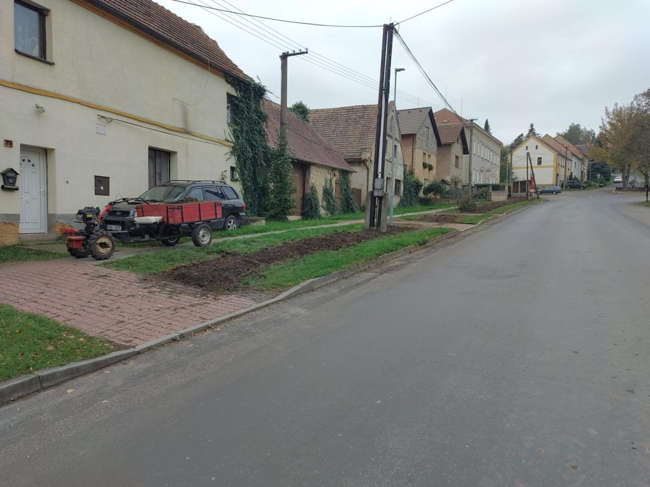 V měsíci listopadu 2024 se podařilo dokončit výsadbu nové zeleně na návsi obce.