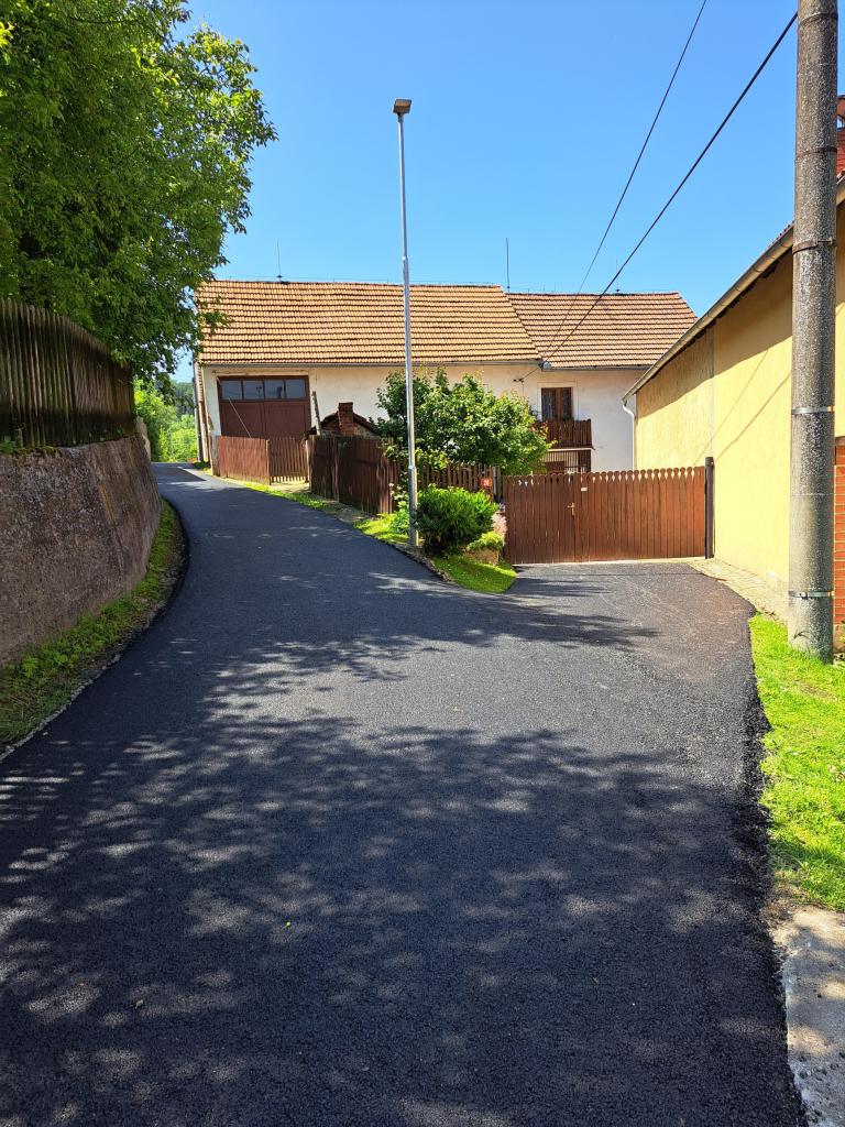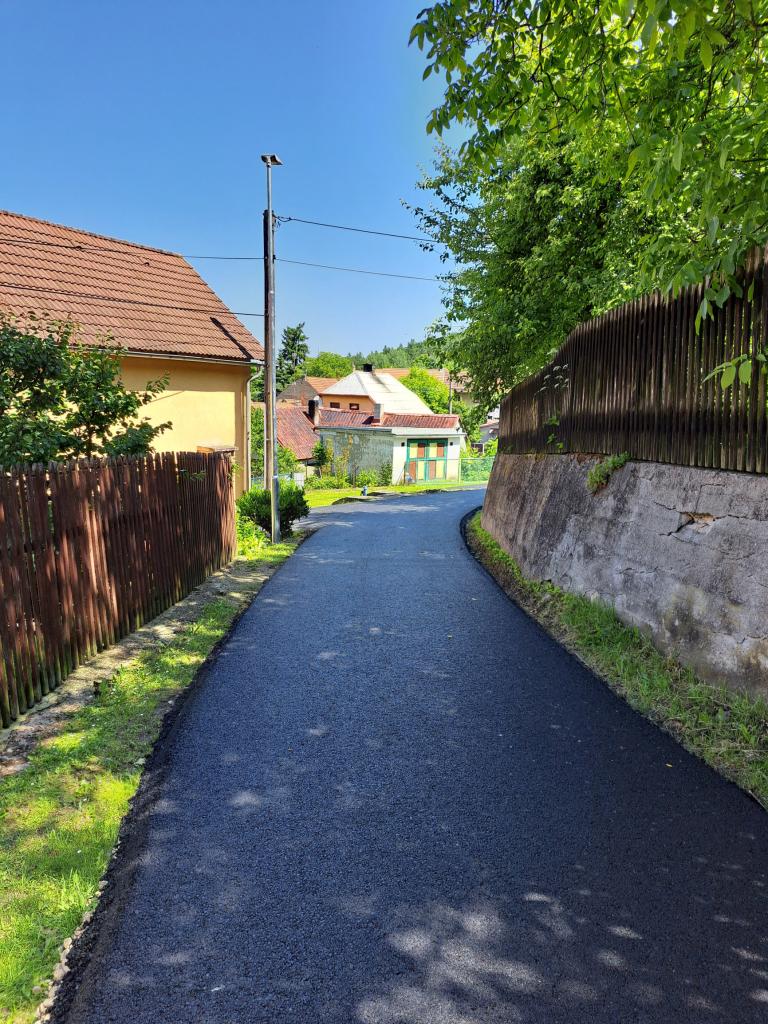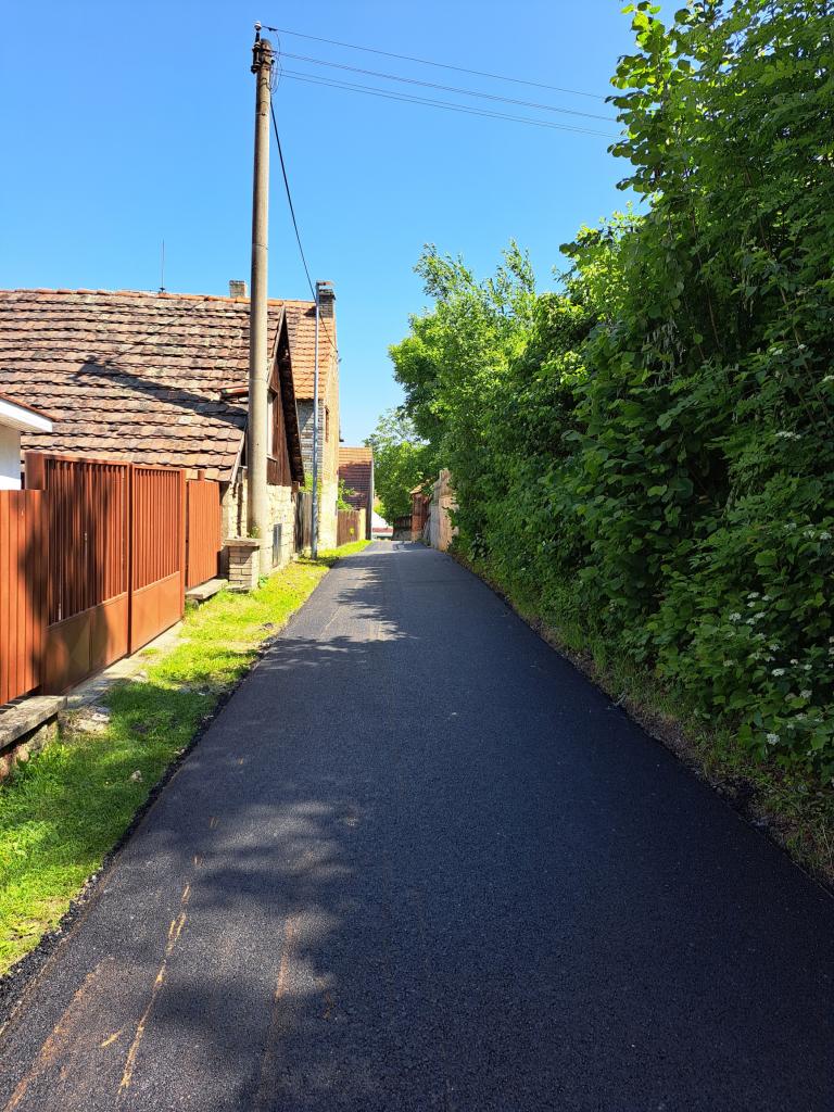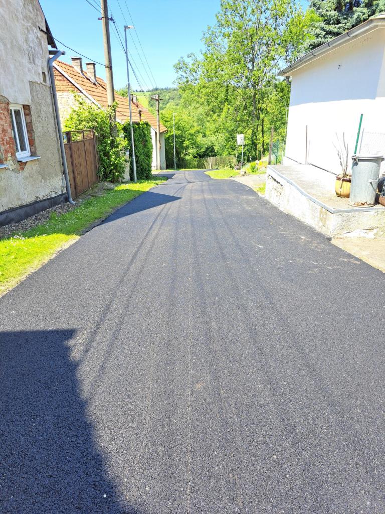 Oprava silničního povrchu místní komunikace na parcele č. 1146, 18/1, 120/4 katastrální územní obce Třeboc, zhotovení živičného povrchu, současně bylo vyměněno pouliční osvětlení za nová úsporná světla