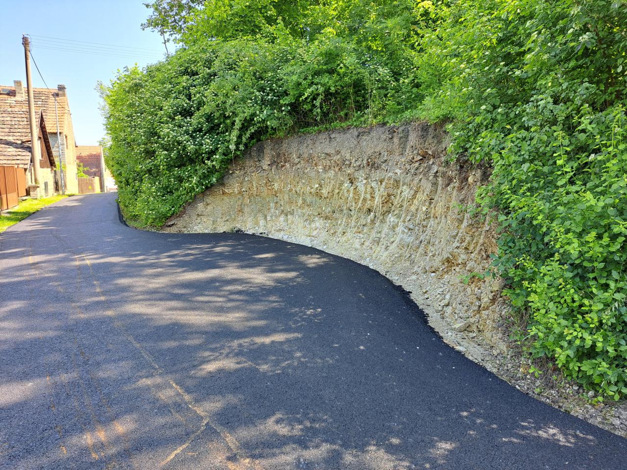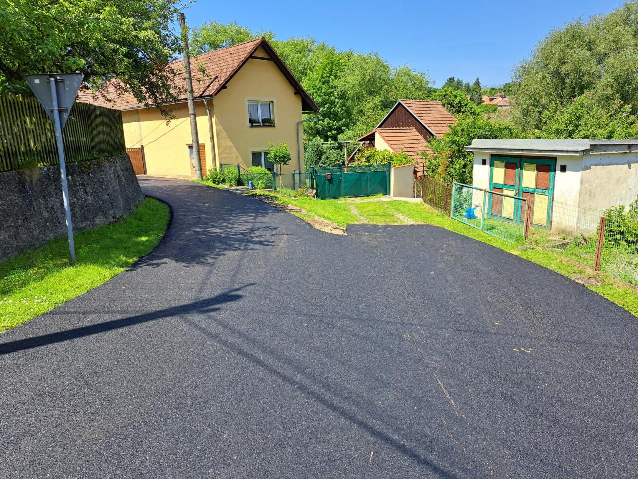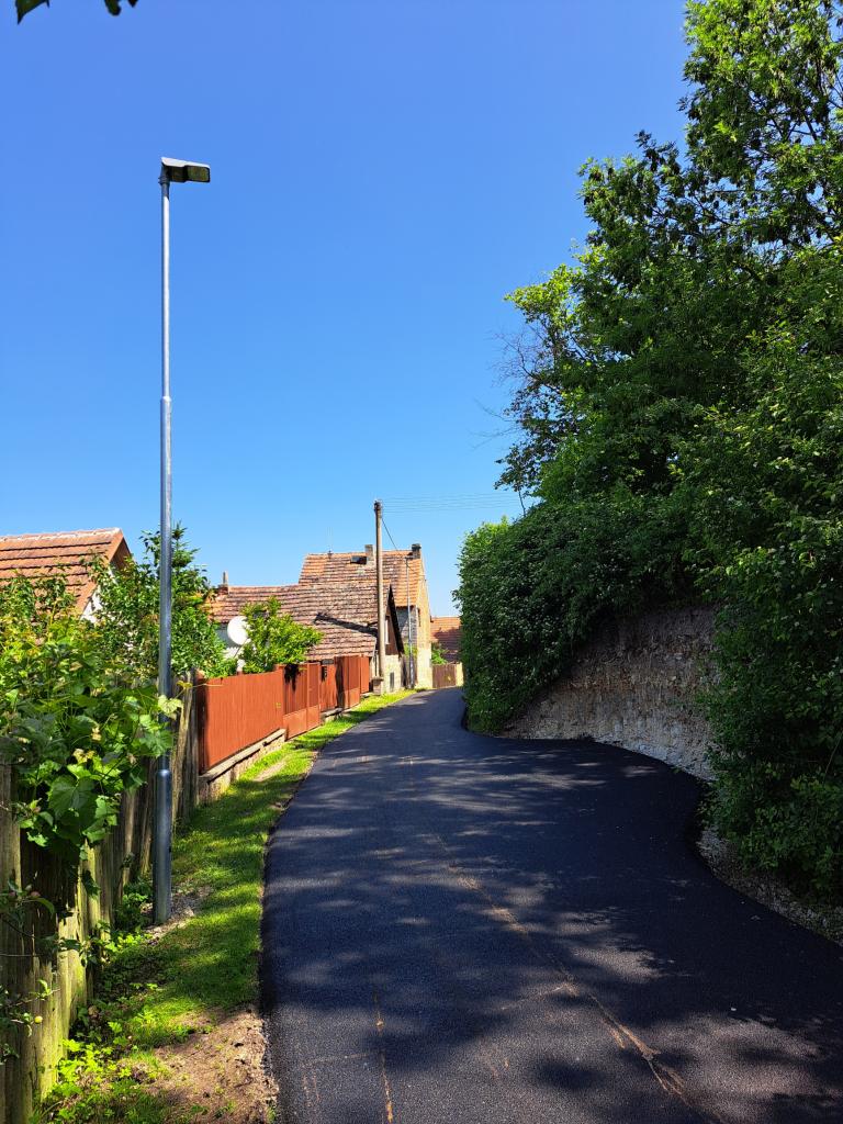 Oprava silničního povrchu místní komunikace na parcele č. 1146, 18/1, 120/4 katastrální územní obce Třeboc, zhotovení živičného povrchu, současně bylo vyměněno pouliční osvětlení za nová úsporná světla