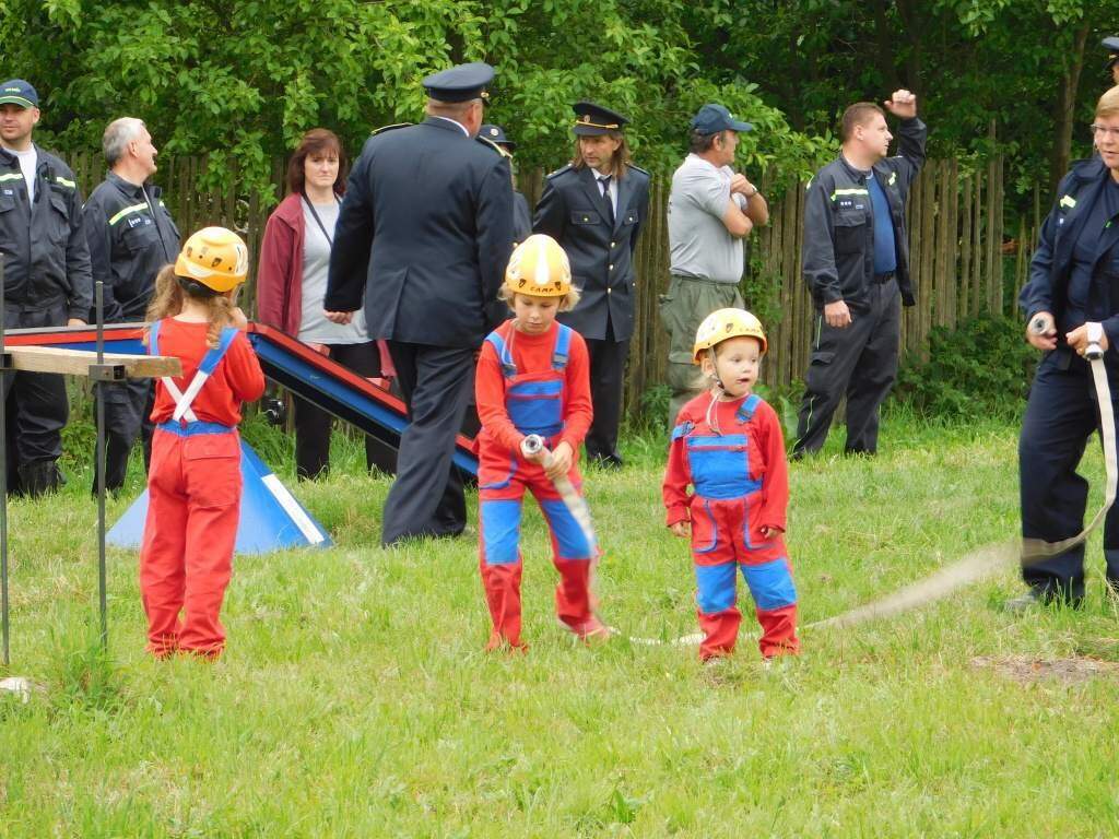 - Nejmenší děti ve věku od 3-6 let předvedou hasičský ůtok a štafetu ,za učasti naší malé hasičky Evičky Majerové ze Třeboce